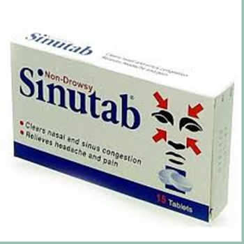 Sinutab Non-Drowsy Decongestant tablets contain Pseudoephedrine 30mg and Paracetamol 500mg which not only helps relieve nasal and sinus congestion caused by allergic and non-allergic rhinitis, the common cold and influenza but also relieves any associated pains or headache.