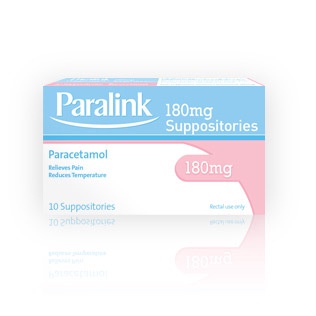 Paralink 180mg Suppositories are suitable for short term pain relief from teething, headache, earache, cold and flu symptoms or minor sprains and strains. They quickly reduce a high temperature or fever.