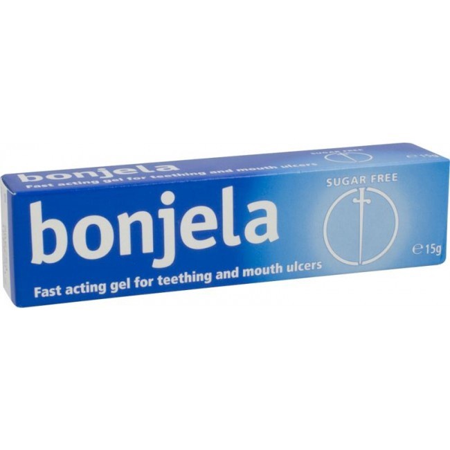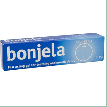 Bonjela is a clear gel, applied to the inside of the mouth or gums to give pain relief from teething, mouth ulcers and sore gums. It contains choline salicylate, a painkiller and anti-inflammatory to soothe the sore area and cetalkonium chloride, which kills bacteria and helps prevent infection.